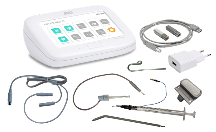 ESTUS MULTI (Plus) - апекслокатор, кариес детектор и пульптестер, а также для управления настройками и индикации рабочих параметров всех функциональных устройств Стоматологического комплекса Estus