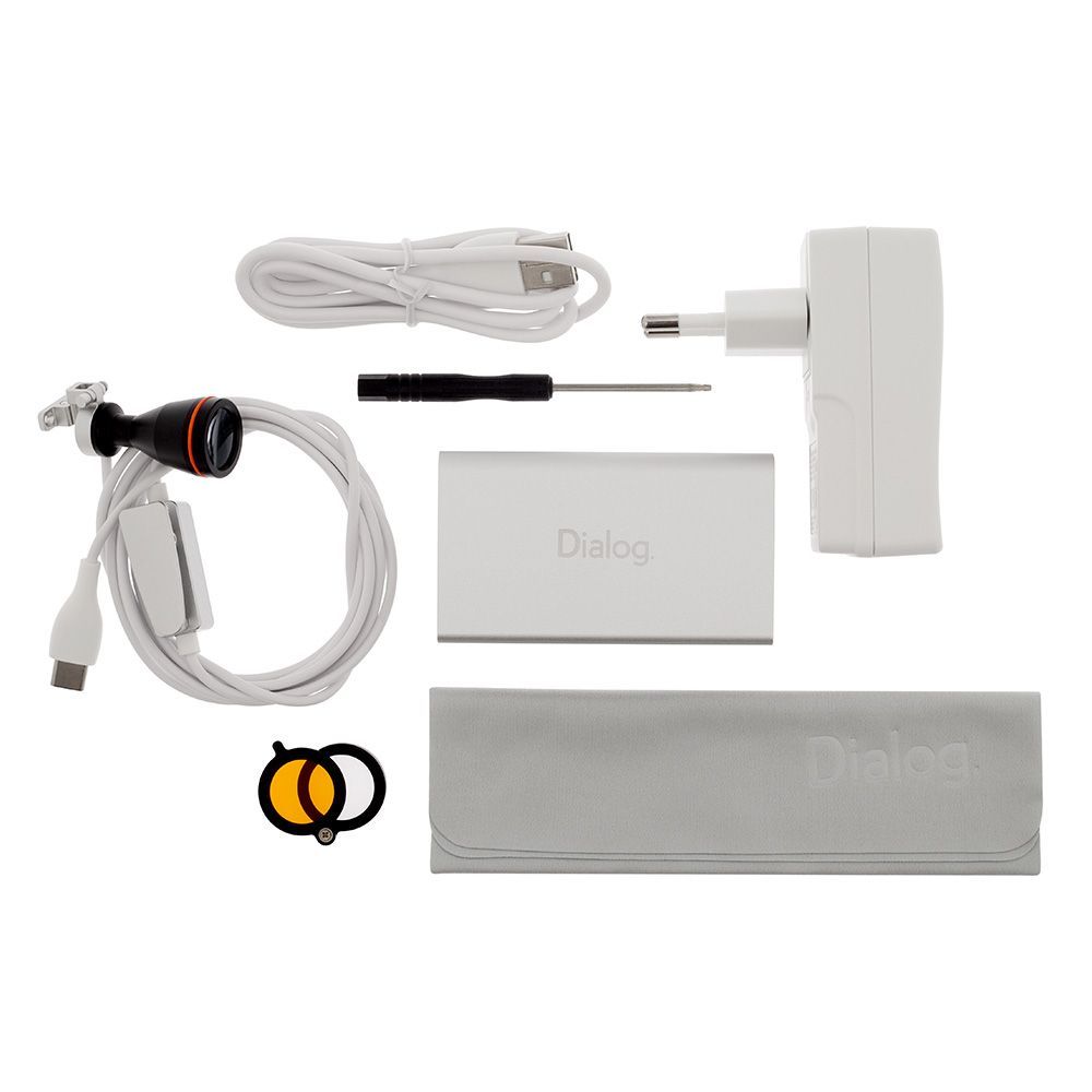 Увеличение на выбор x3 или x3.5. Яркость освещения 35 000 Лк. Портативный аккумулятор.