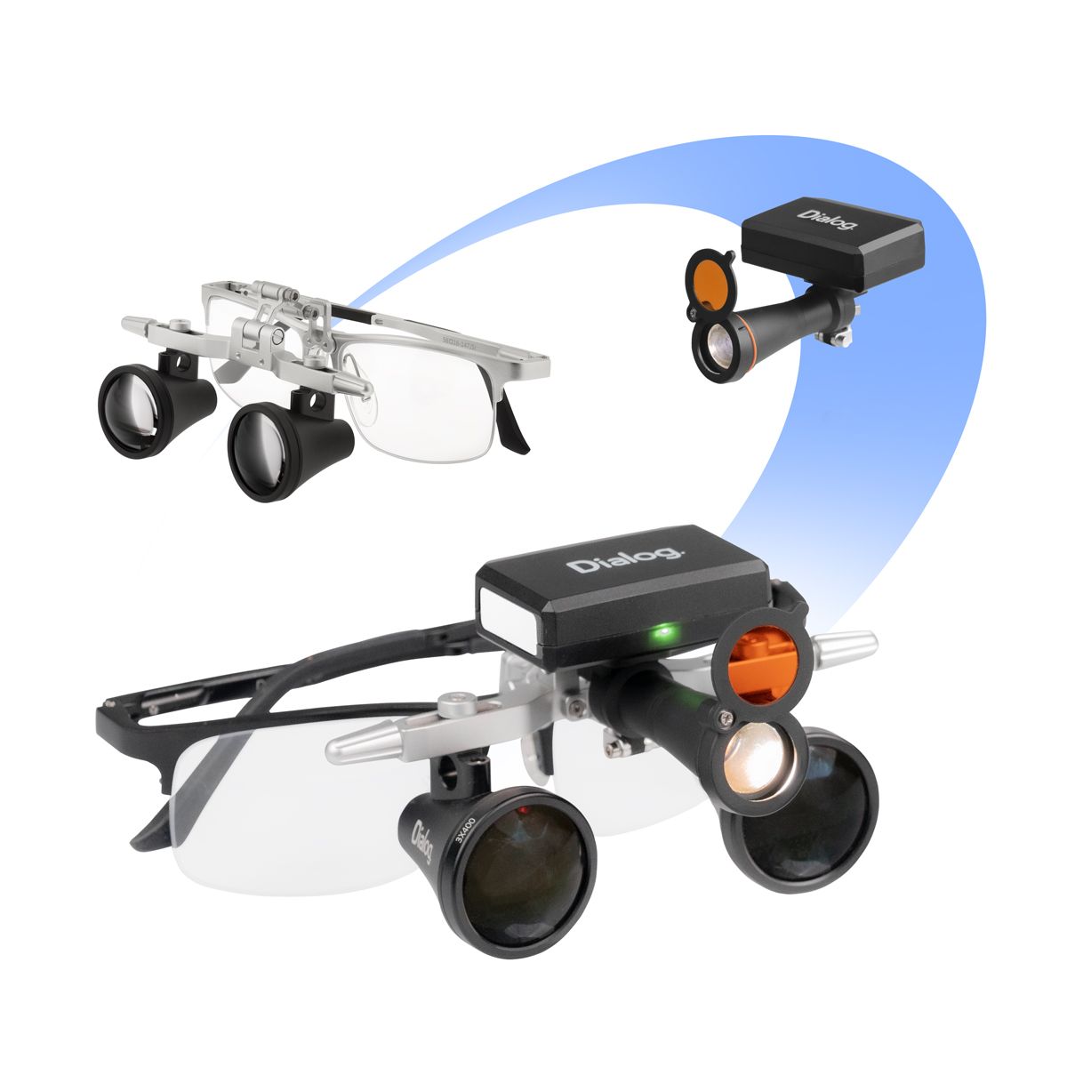 Беспроводной осветитель Dialog используется с бинокулярными лупами.