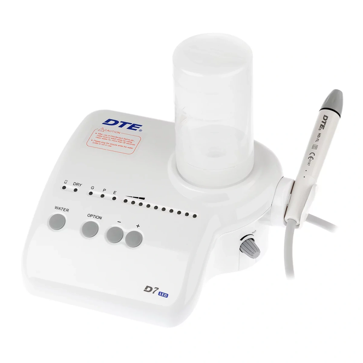 DTE D7 LED — это профессиональный пьезоэлектрический скалер от завода Woodpecker с автономной системой подачи воды и фиброоптической подсветкой. Аппарат предназначен для комплексного лечения в стоматологии: от снятия зубных отложений до прецизионных эндодонтических манипуляций.